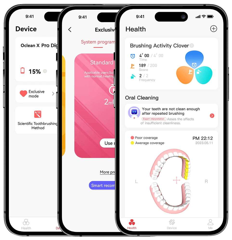 إرشادات احترافية للعناية الفموية، بالجمع مع الأجهزة الذكية لـ Oclean للعناية الفموية وخدمات